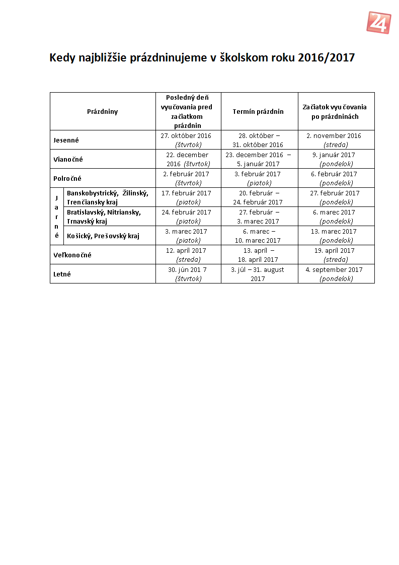 Galéria k článku Prehľad prázdnin na školský rok 2016/2017