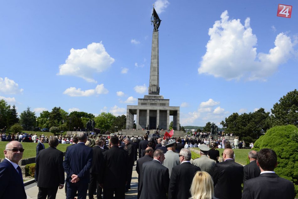 Účastníci pietneho aktu pri príležitosti 71. výročia Dňa víťazstva nad fašizmom na pamätníku na Slavíne.